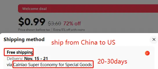 Many people shop on AliExpress because the prices are low and they’re okay with the wait. But if you don’t want to wait, you can pay a bit extra for faster options like AliExpress Standard Shipping or choose to ship from the U.S. You can also look for items marked ‘Choice’—items shipped and handled by AliExpress with faster delivery, around 10 days.