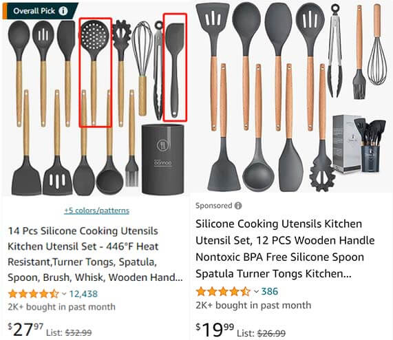 Also, the number of items in a bundle should match what people want, not just adding or removing items randomly. Take our client who sells cooking utensils bundles. After checking out the top sellers, which had 14 pieces, he decided to drop the unnecessary and less used ones, making a 12-piece set.